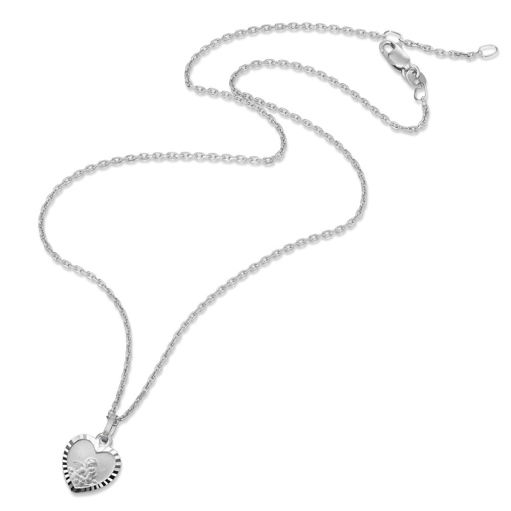 Feine Mädchen-Halskette aus Silber mit zartem Schutzengel-Anhänger in Herzform. Ein liebevolles Accessoire, das Schutz und Geborgenheit symbolisiert. Perfekt als besonderes Geschenk für kleine Engel und zaubert ein strahlendes Lächeln. Elegant und zeitlos zugleich.