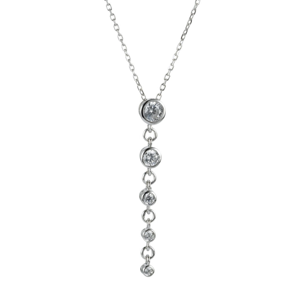 Halskette mit Anhänger Silber Zirkonia 5 Steine rhodiniert 42 cm