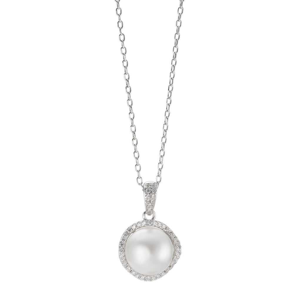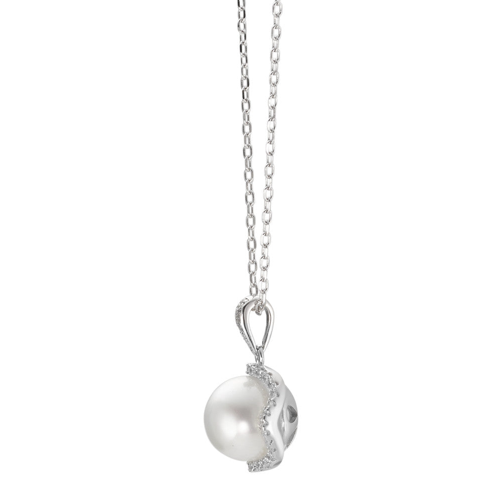 Elegante Damen-Halskette aus Silber mit einem zarten Anhänger, besetzt mit funkelnden Zirkonia-Steinen und einer Perle in der Mitte. Ein zeitloses Accessoire, das jedem Outfit eine edle Note verleiht – perfekt für besondere Anlässe oder den Alltag.