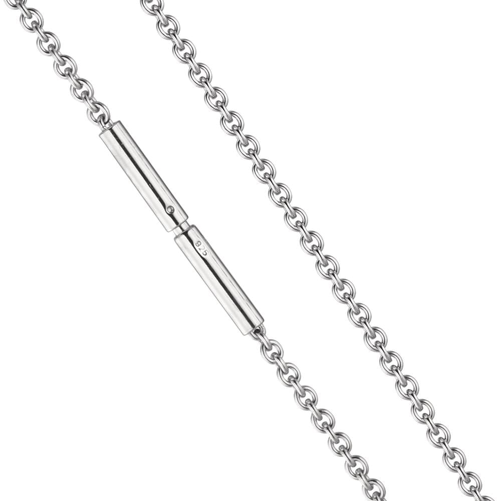 Elegante Halskette aus hochwertigem Silber, die durch ihr schlichtes Design besticht. Ideal für jeden Anlass, passt diese zeitlose Kette perfekt zu casual oder festlichen Outfits und verleiht Ihrem Look dezenten Glanz und Stil. Leicht und angenehm zu tragen.