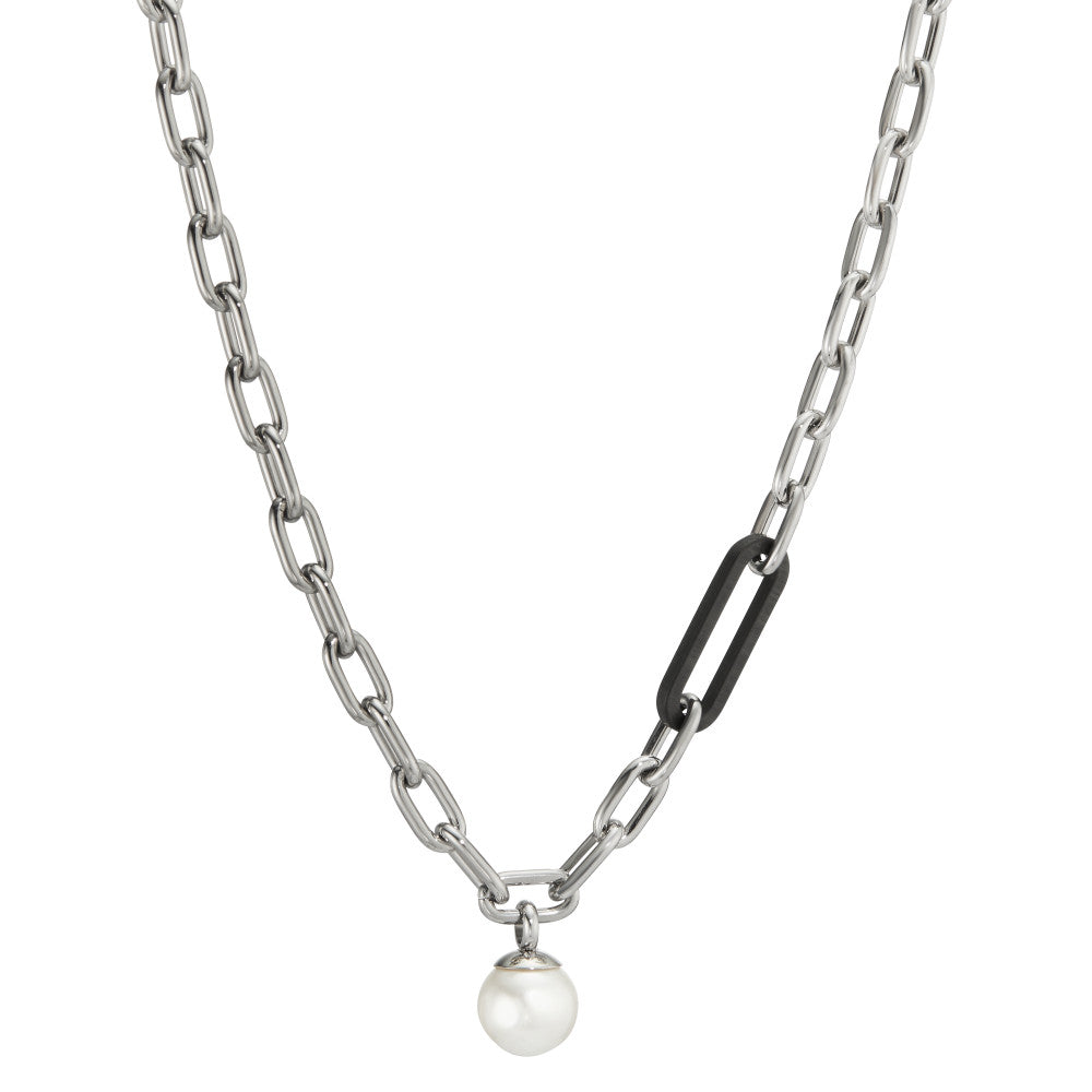 Halskette Soho Pearl Drop Silver aus Edelstahl mit Carbon und Muschelperle, 43-48 cm verstellbar