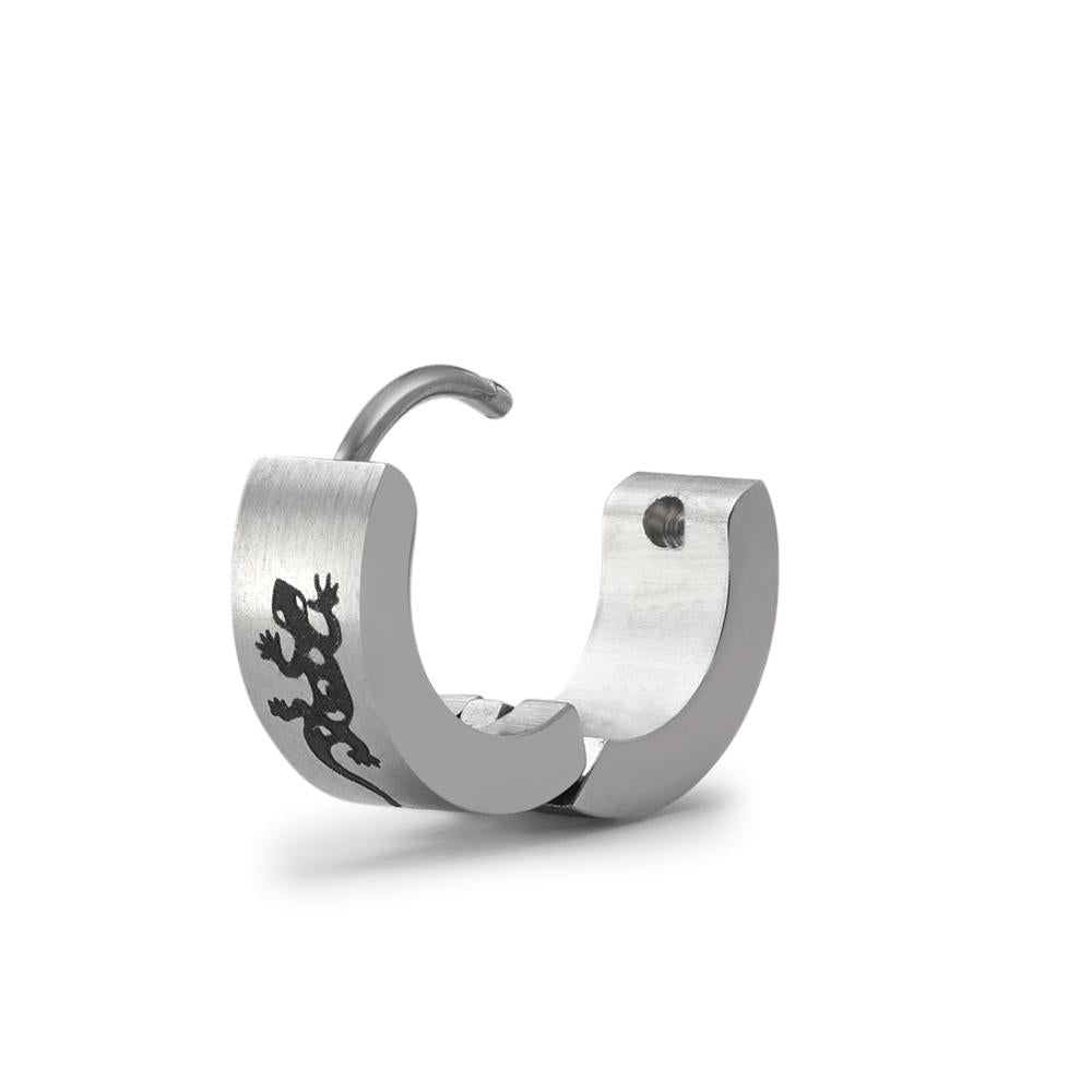 Stylische Herren-Klappcreole aus hochwertigem Edelstahl mit geprägtem Gecko-Motiv. Robust, zeitlos und angenehm zu tragen, verleiht dieses Accessoire deinem Look einen coolen Akzent. Perfekt für den Alltag oder besondere Gelegenheiten. In Einheitsgröße, leicht zu öffnen und zu schließen.