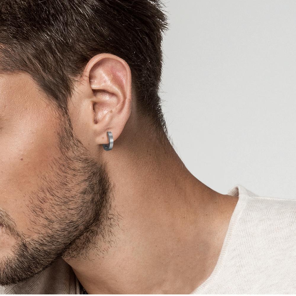 Moderner Herren Klappcreolen-Ohrring aus hochwertigem Edelstahl. Dezentes, mattiertes Design für den täglichen Gebrauch. Robust, langlebig und hautfreundlich – perfekt für stilbewusste Männer, die Wert auf schlichte Eleganz legen. Lieferung einzeln.