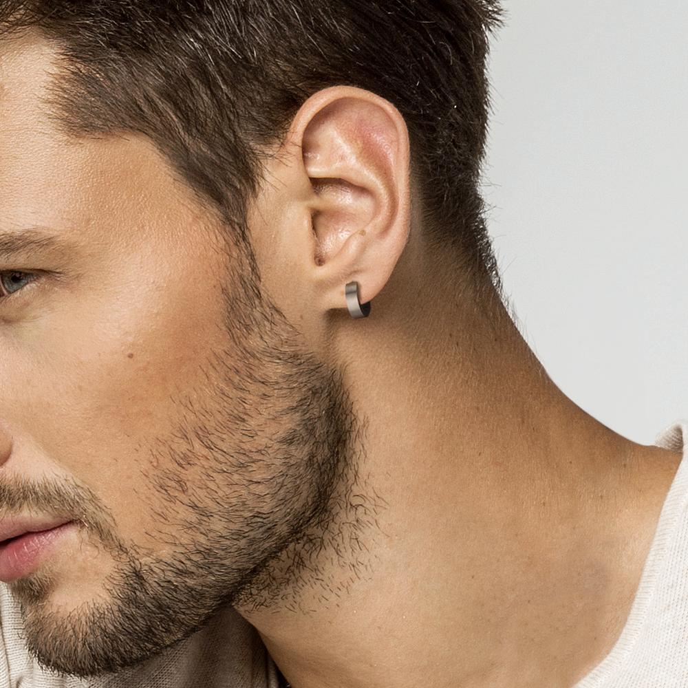 Moderner Herren-Klappcreolen-Ohrring aus robustem Titan. Mit seiner matt gebürsteten Oberfläche vereint er zeitloses Design und hohen Tragekomfort. Ideal für den Alltag oder besondere Anlässe – ein dezenter, langlebiger Schmuckklassiker für den modebewussten Mann.