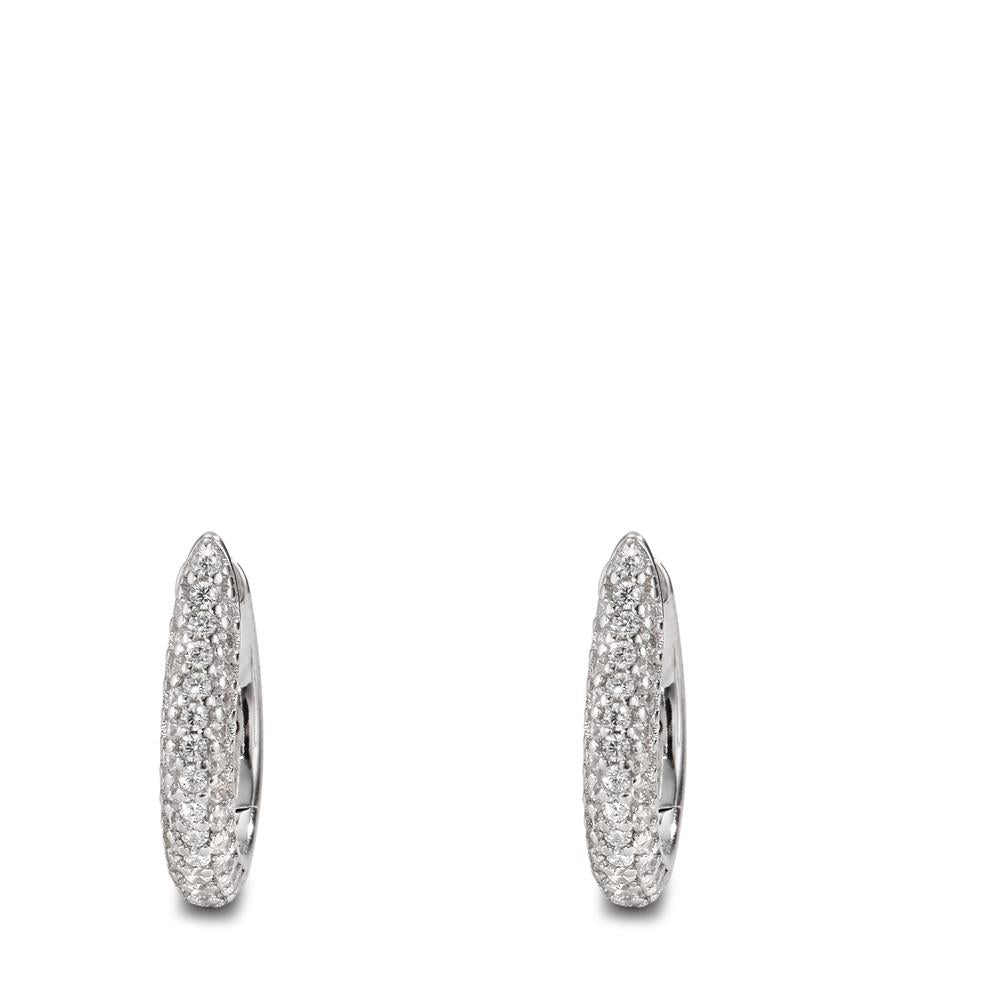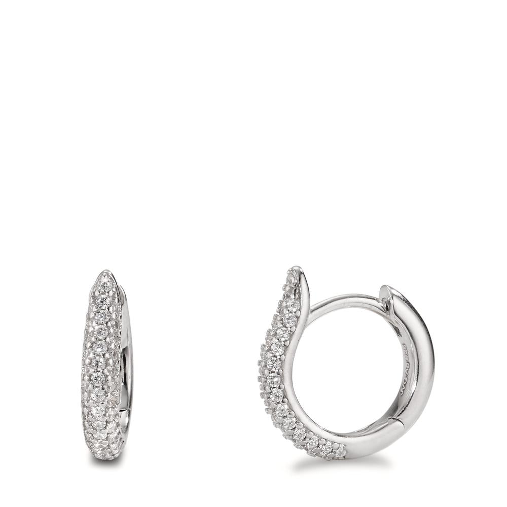 Elegante Damen Klappcreolen aus glänzendem Silber, verziert mit funkelnden Zirkonia-Steinen. Diese zeitlosen Ohrringe ergänzen jedes Outfit mit einem Hauch von Glamour und sind dank des praktischen Klappverschlusses angenehm zu tragen. Ein must-have Accessoire für jeden Anlass.