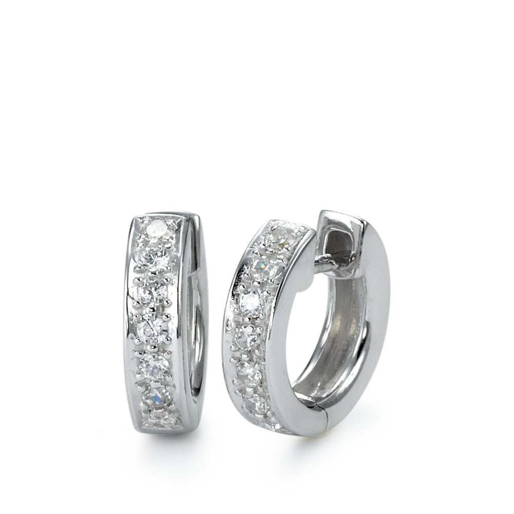 Klappcreolen Silber Zirkonia weiss, 14 Steine rhodiniert