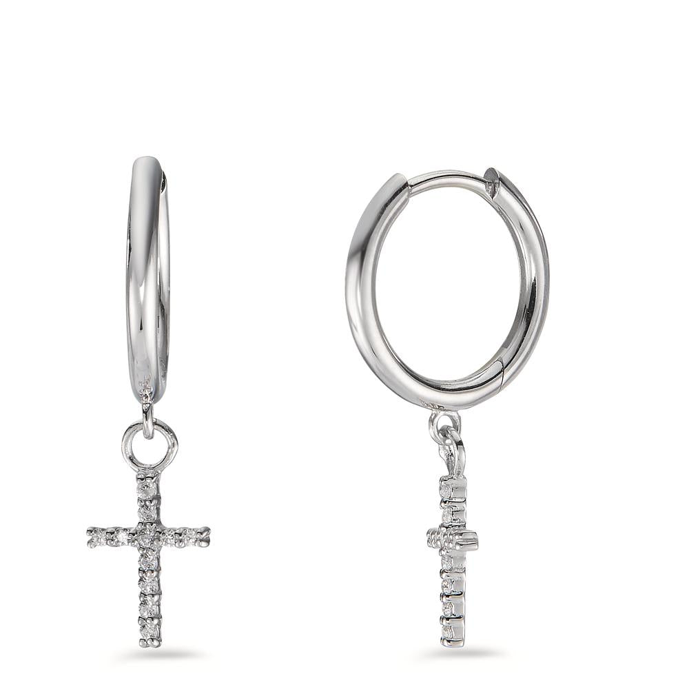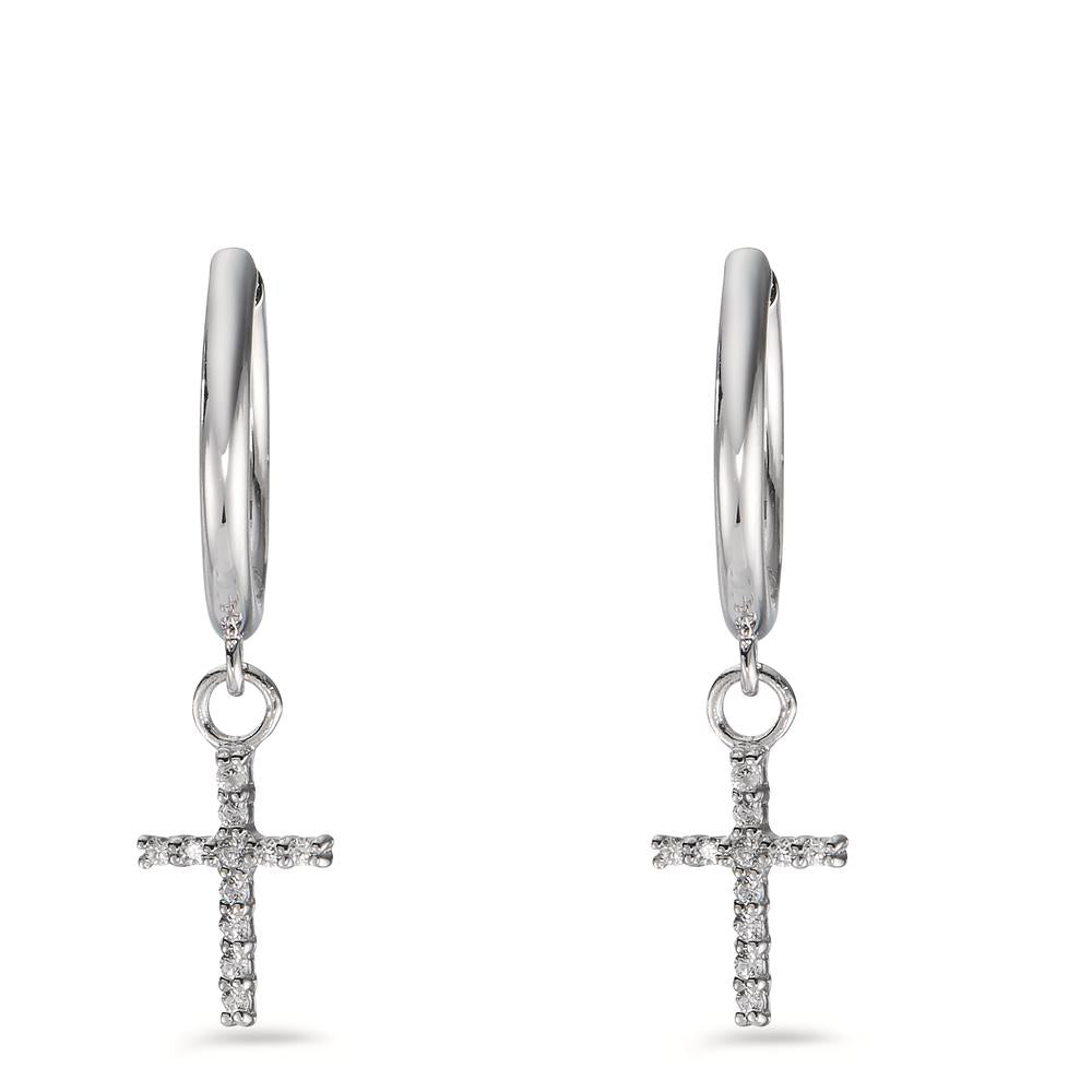 Klappcreolen Silber Zirkonia weiss, 22 Steine rhodiniert Kreuz