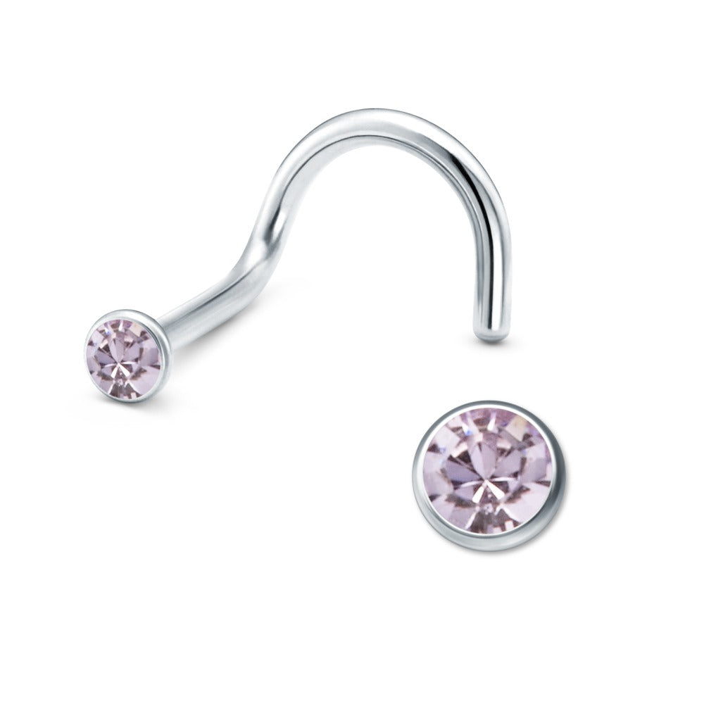 Eleganter Damen-Nasenstecker aus hochwertigem Edelstahl mit funkelndem Kristallstein in zartem Rosa. Der dezente Look sorgt für stilvolle Akzente und ist dank des formstabilen Materials besonders hautfreundlich und langlebig. Perfektes Accessoire für jeden Tag.