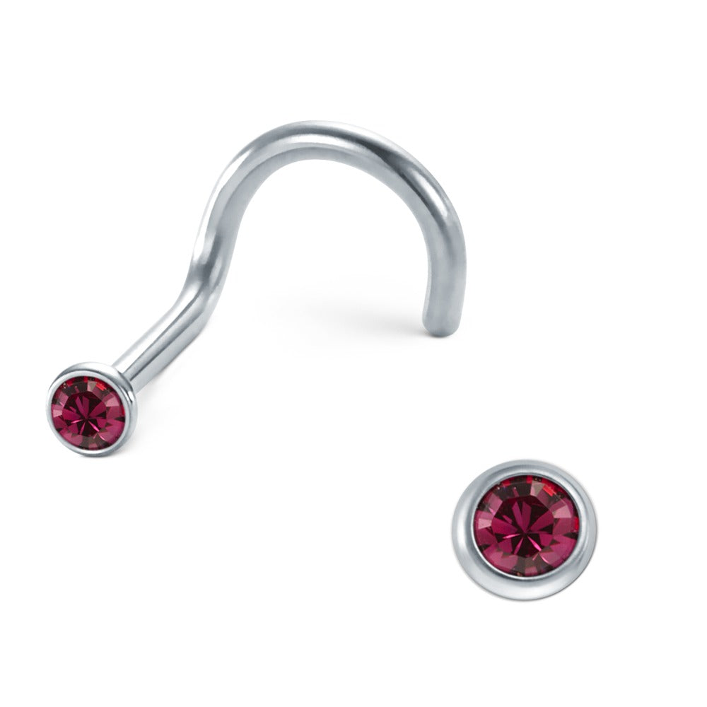 Eleganter Damen Nasenstecker aus hochwertigem Edelstahl, veredelt mit funkelndem Zirkonia in schönem Rubinrot. Hautverträglich, langlebig und perfekt für den täglichen Gebrauch. Ein dezentes Accessoire, das Ihrem Look stilvollen Glanz verleiht.