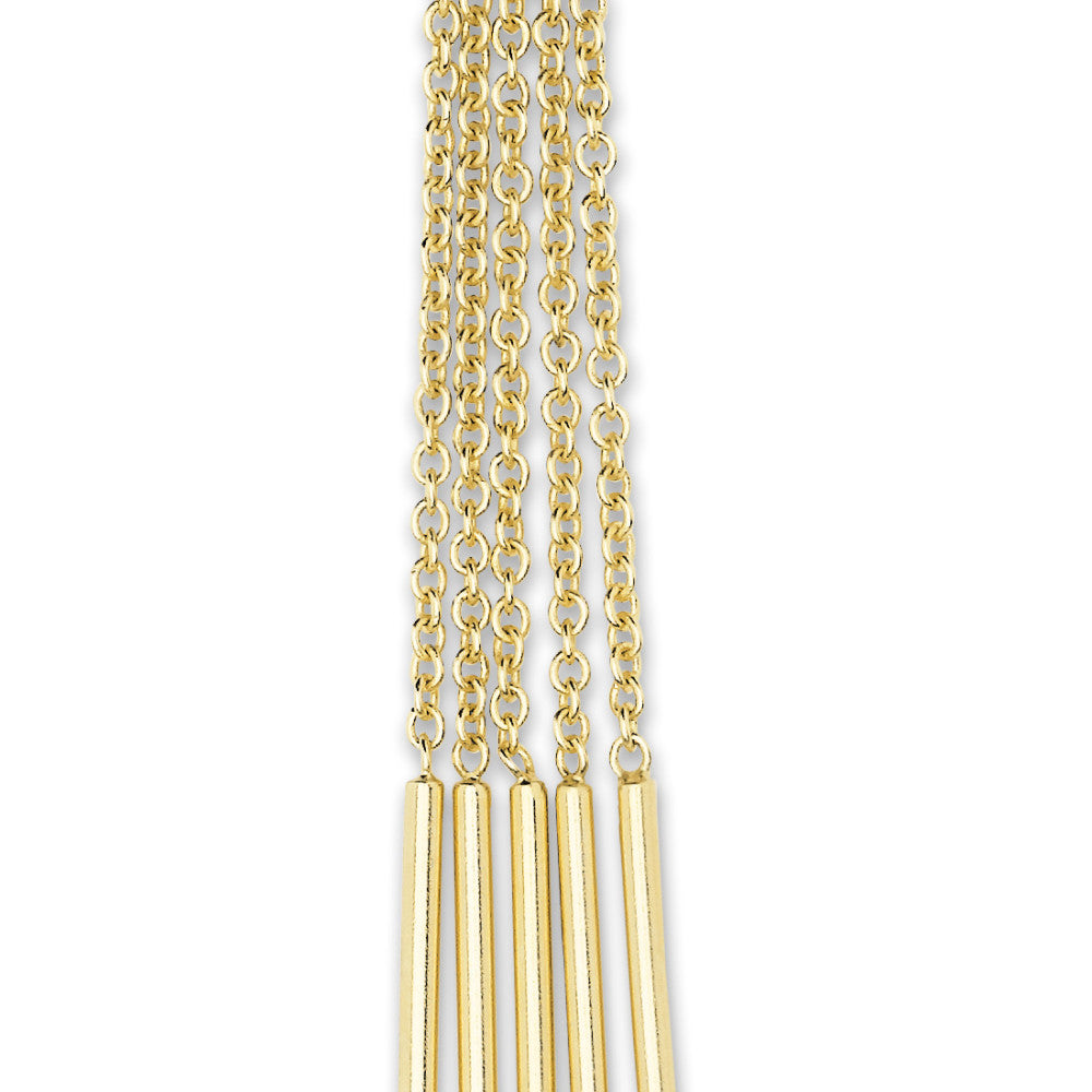 Elegante Damen Ohrhänger aus hochwertiger Bronze in Goldoptik. Die feinen Kettchen verbinden sich zu stilvollen, schlanken Stäbchendetails, die beim Tragen sanft mitschwingen. Ein zeitloses Accessoire, das jedem Outfit eine elegante Note verleiht. Ideal für besondere Anlässe oder den Alltag.