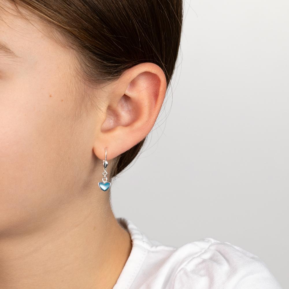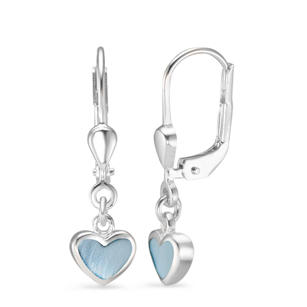 Zauberhafte Mädchen-Ohrhänger aus hochwertigem Silber mit herzförmigem Anhänger. Das Herz ist elegant mit schimmerndem Perlmutt in zartem Blau ausgelegt und verleiht den Ohrringen einen liebevollen, verspielten Charme – perfekt für jeden Alltag und besondere Anlässe.