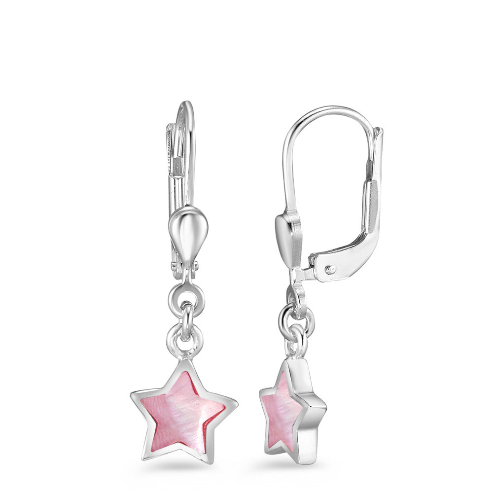 Zarte Mädchen-Ohrhänger aus hochwertigem Silber mit verspieltem Stern-Anhänger aus schimmerndem rosa Perlmutt. Ein liebevolles Accessoire, das jeder kleinen Prinzessin Freude bereitet und sich perfekt für jeden Anlass eignet. Leicht und angenehm zu tragen.