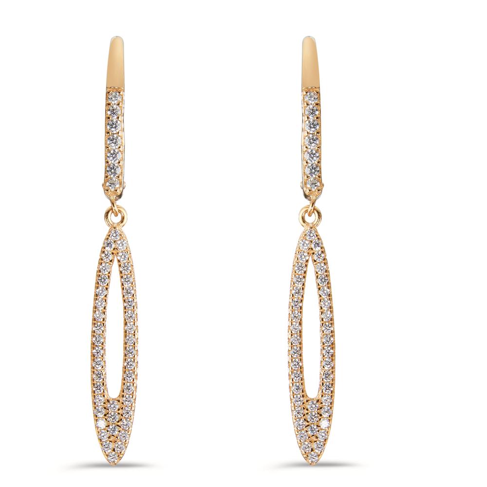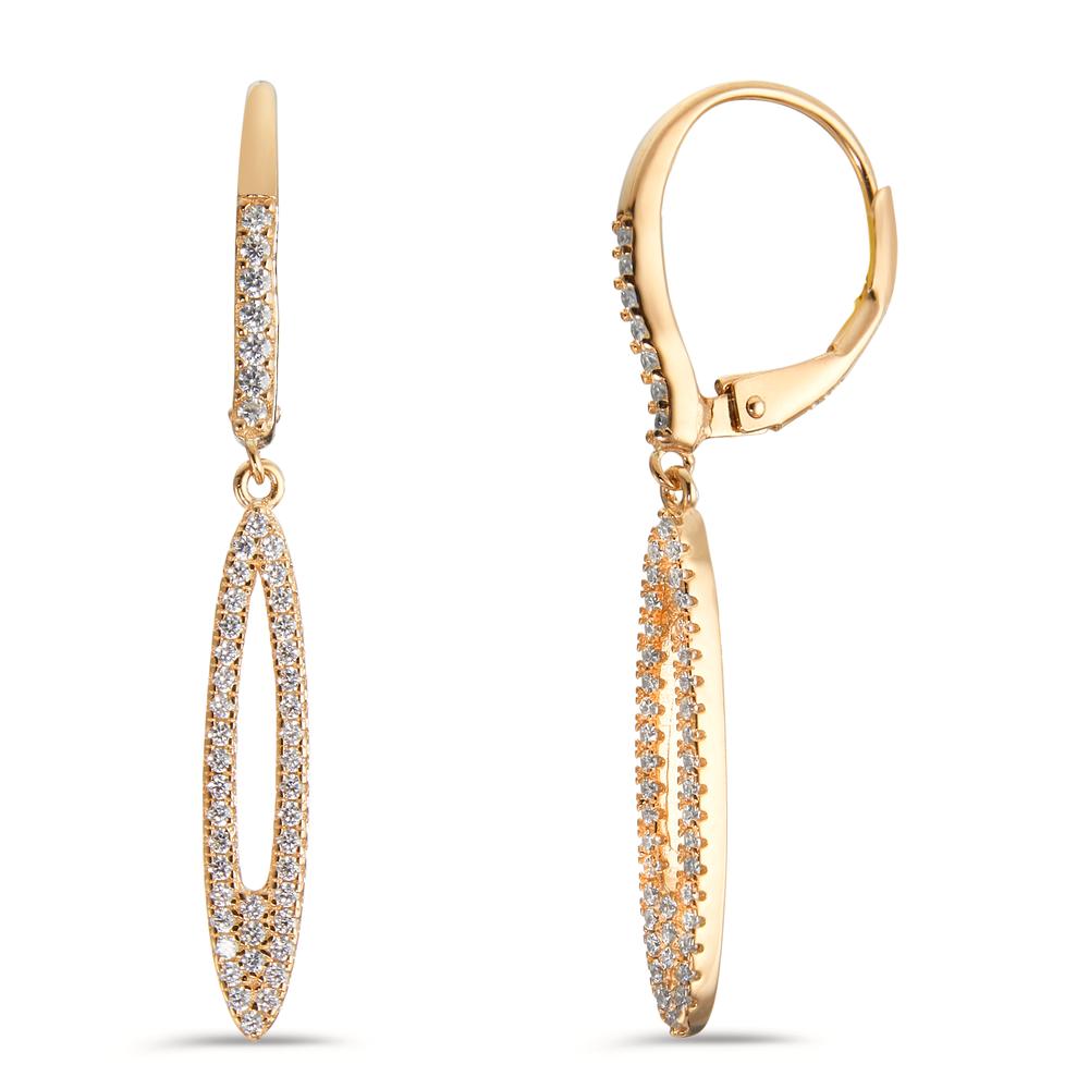 Elegante Damen Ohrhänger aus feinem Silber mit goldfarbener Vergoldung, besetzt mit funkelnden Zirkonia-Steinen. Das schlanke, ovale Design verleiht jedem Look eine raffinierte Note. Perfekt für festliche Anlässe oder den Alltag – ein zeitloses Schmuckstück voller Eleganz.