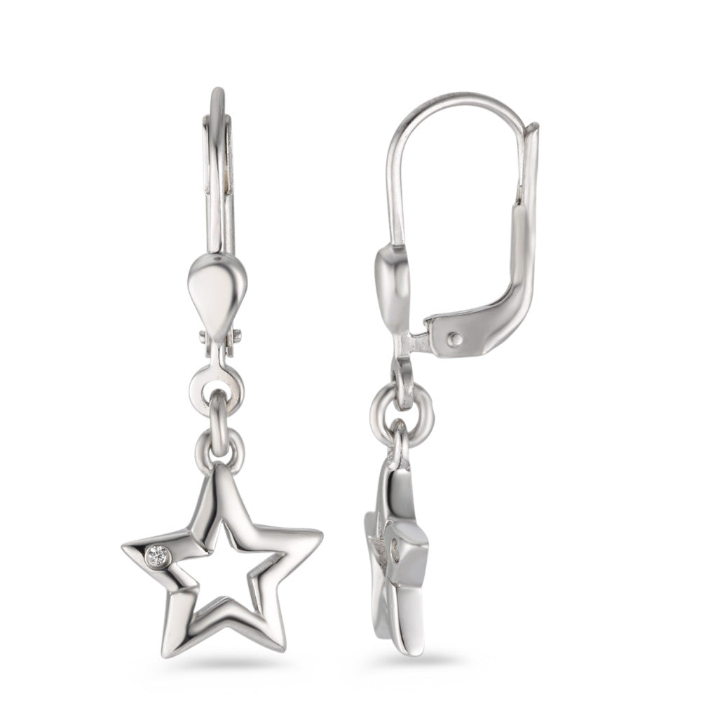 Ohrhänger Silber Zirkonia weiss, 2 Steine rhodiniert Stern