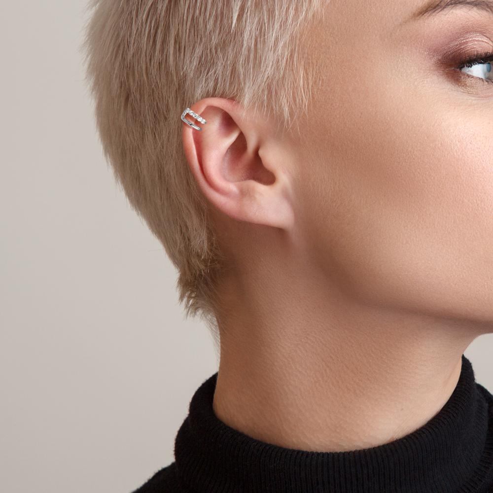Edle Damen Ohrklemme aus hochwertigem 925er Silber, verziert mit funkelnden Zirkonia-Steinen. Modernes Design ohne Ohrloch, ideal für eleganten und zugleich bequemen Tragekomfort. Perfektes Accessoire für jeden Anlass, das Ihrem Look einen glamourösen Akzent verleiht.