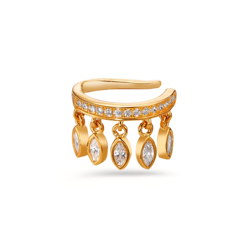 Diese elegante Damen Ohrklemme aus feinem Silber ist mit funkelnden Zirkonia-Steinen besetzt. Das filigrane Design mit hängenden Steinanhängern verleiht jedem Look einen femininen und glamourösen Akzent – ideal für stilbewusste Frauen, die ohne Ohrlöcher glänzen möchten.