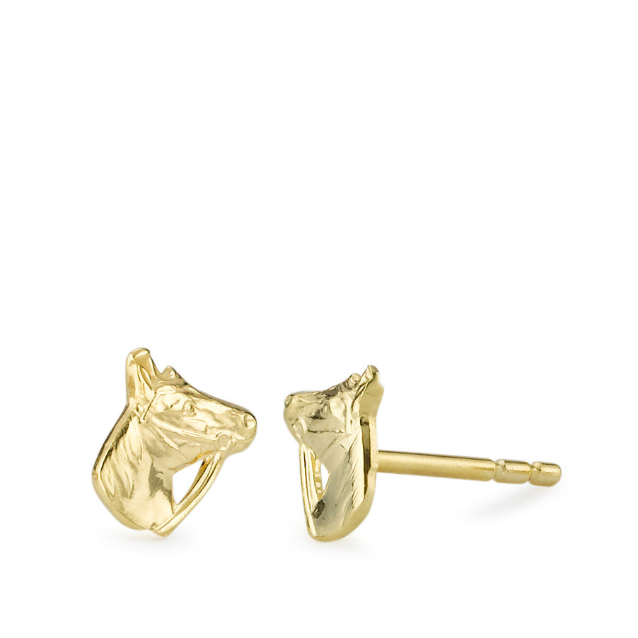 Zarte Mädchen-Ohrstecker aus hochwertigem 375er Gelbgold in Form eines Pferdekopfes. Dieses feine Schmuckstück kombiniert kindliche Freude mit edlem Design und ist das perfekte Accessoire für kleine Pferdefreunde. Ideal als Geschenk oder zum Selbsttragen.
