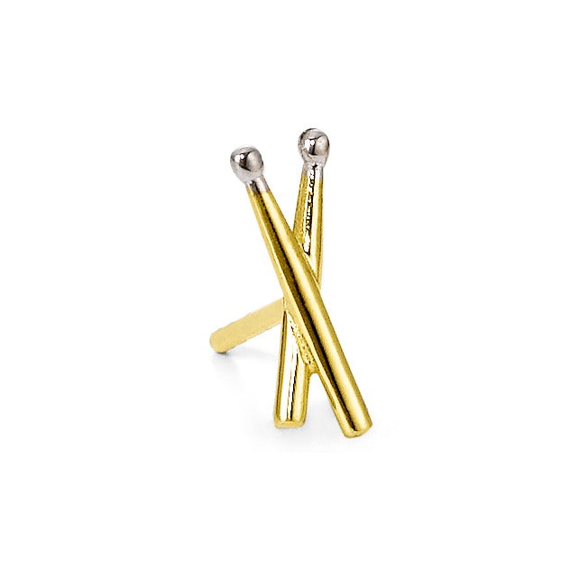 Moderner Herren Ohrstecker aus 375er Gelbgold in Form eines stilisierten Trommelstocks. Ein individuelles Schmuckstück für Musikliebhaber und Drummer, das Eleganz und Persönlichkeit vereint. Perfekt für den Alltag oder besondere Anlässe. Einzeln erhältlich.