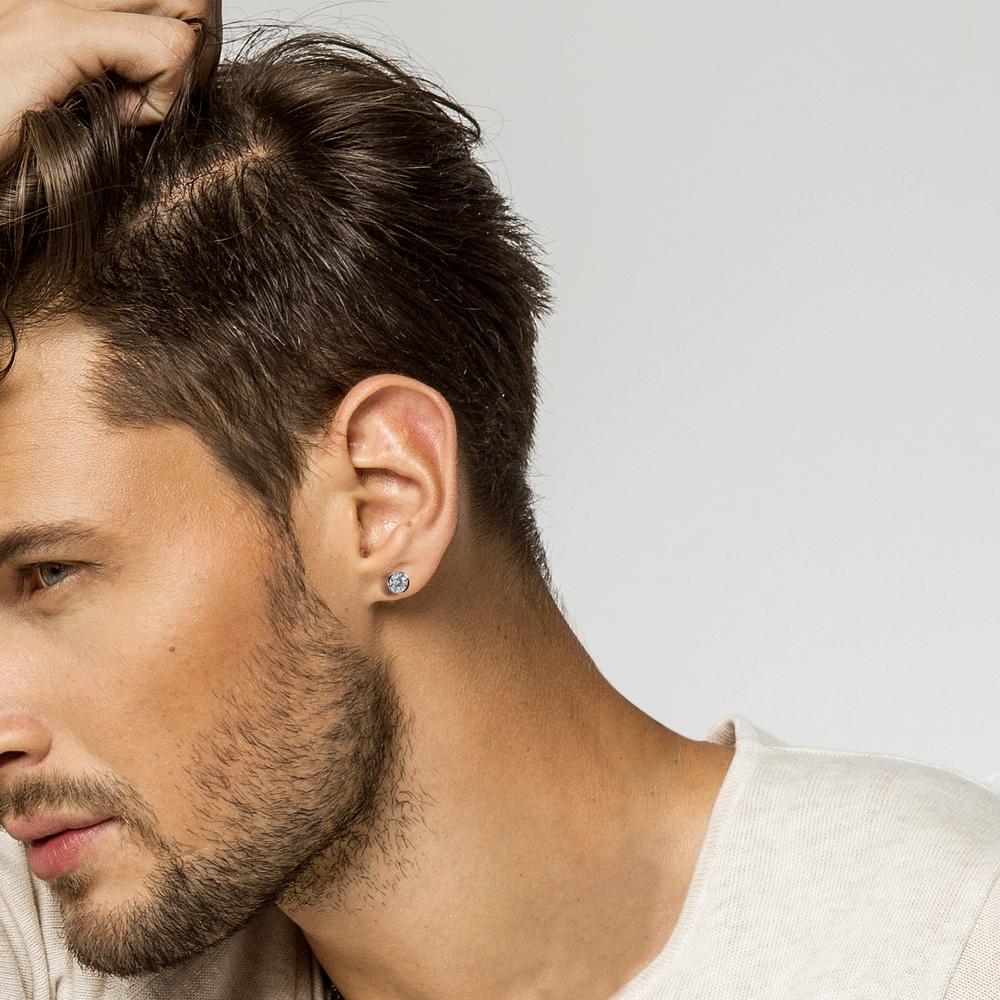 Moderner Herren-Ohrstecker aus hochwertigem 375 Weißgold, besetzt mit funkelndem Zirkonia. Dezentes Design, perfekt für den stilbewussten Mann, der zeitlose Eleganz und zurückhaltenden Glanz schätzt. Einzelner Stecker, ideal als kraftvolles Statement.