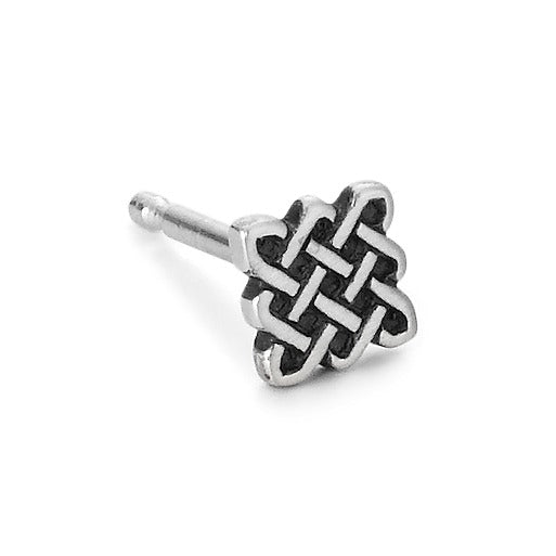 Stylisher Herren Ohrstecker aus hochwertigem Silber mit ethnischem Knotenmuster. Das auffällige Design verleiht jedem Look eine besondere Note. Ideal für Männer, die Wert auf moderne und individuelle Accessoires legen. Lieferung einzeln, perfekt zum Kombinieren.