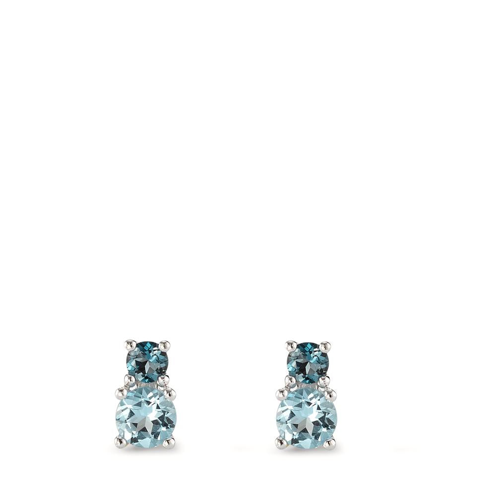 Elegante Damen-Ohrstecker aus 375 Weißgold mit zwei leuchtenden London Blue Topasen in verschiedenen Blautönen. Die filigrane Verarbeitung und das stilvolle Design machen diese Ohrstecker zum perfekten Accessoire für jeden Anlass, das dezenten Glamour und zeitlose Schönheit vereint.