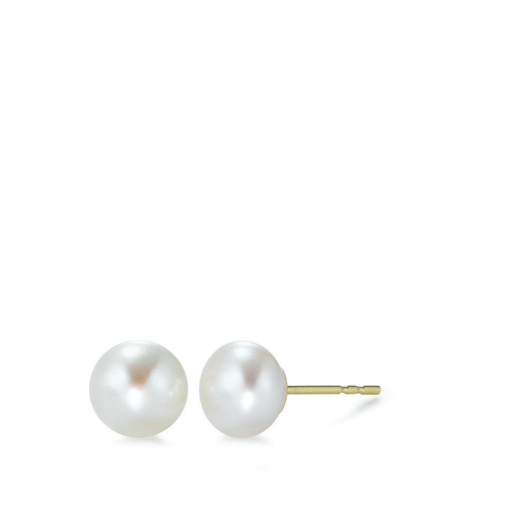 Ohrstecker 750/18 K Gelbgold Süsswasserzuchtperle weiss, 2 Perlen 7-8 mm