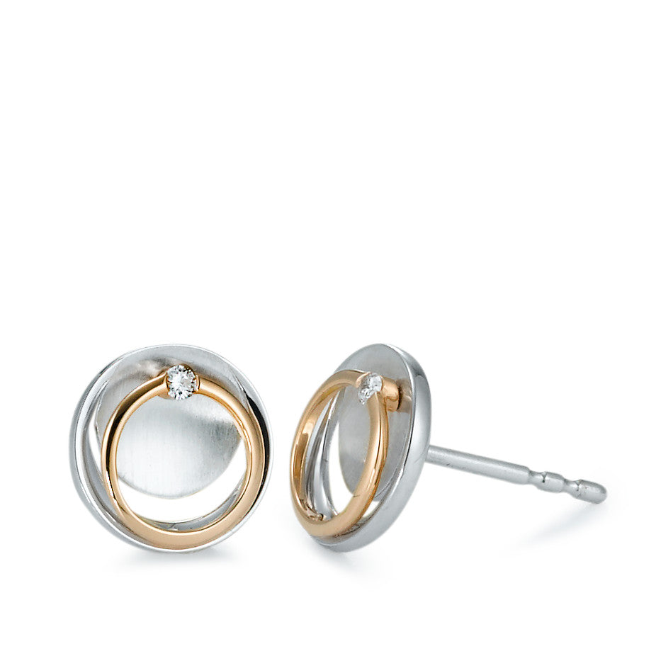 Ohrstecker 750/18 K Rotgold, 750/18 K Weissgold Diamant 0.02 ct, 2 Steine, Brillantschliff, w-si Ø9 mm