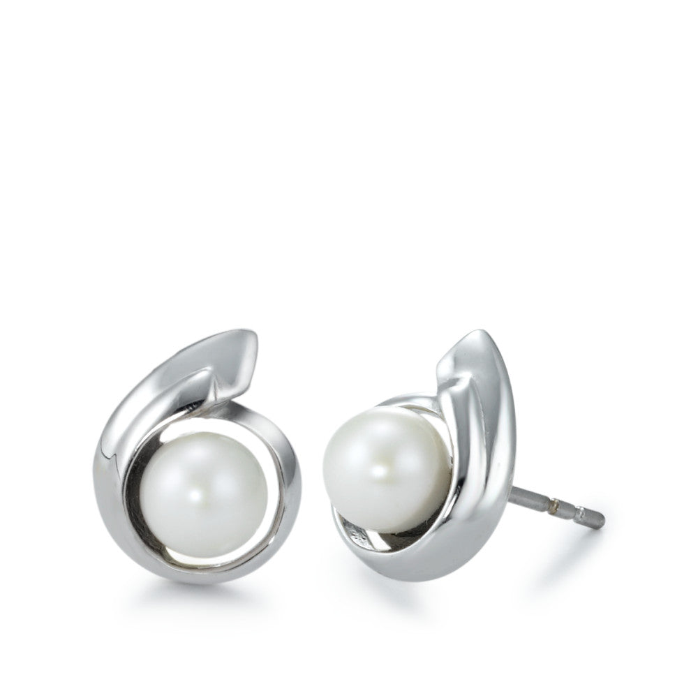 Ohrstecker 750/18 K Weissgold Süsswasserzuchtperle weiss, 2 Perlen, 6 mm
