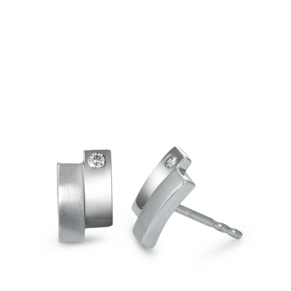 Elegante Damen Ohrstecker aus 750er Weißgold mit funkelnden Zirkonia-Steinen. Das moderne Design verbindet matte und polierte Oberflächen und verleiht jedem Outfit einen edlen Glanz. Perfekt für besondere Anlässe oder den Alltag – hochwertiger Schmuck mit zeitloser Eleganz.