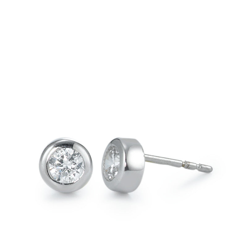Elegante Damen Ohrstecker aus hochwertigem 750er Weißgold, veredelt mit funkelnden Zirkonia-Steinen. Die klassische und zeitlose Fassung macht diesen Schmuck zu einem perfekten Begleiter für jeden Anlass. Für stilbewusste Damen, die dezenten Glanz lieben.