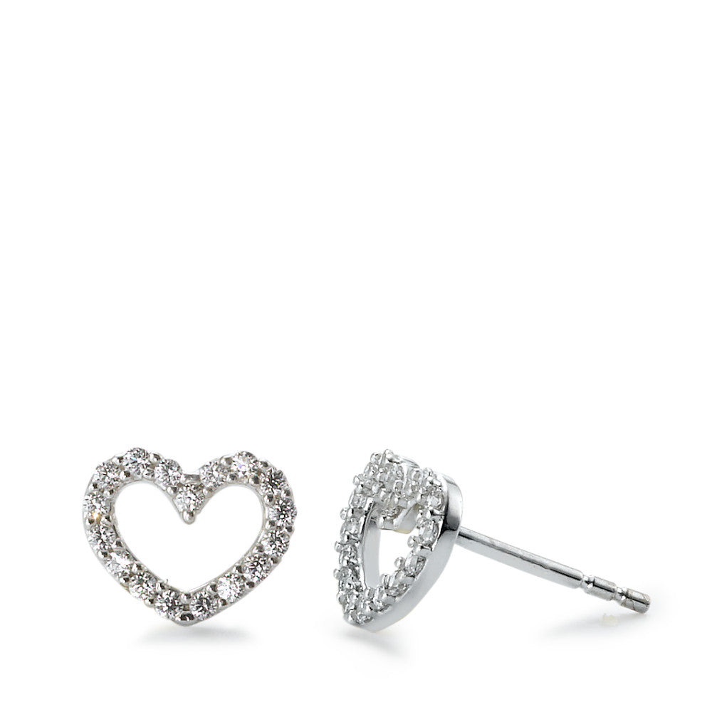 Elegante Damen Ohrstecker aus 750er Weißgold in herzförmigem Design. Funkelnde Zirkonia-Steine verleihen diesen zarten Schmuckstücken zeitlose Schönheit und brillanten Glanz. Perfekt für jeden Anlass, setzen sie stilvolle Akzente und unterstreichen Ihre feminine Ausstrahlung.
