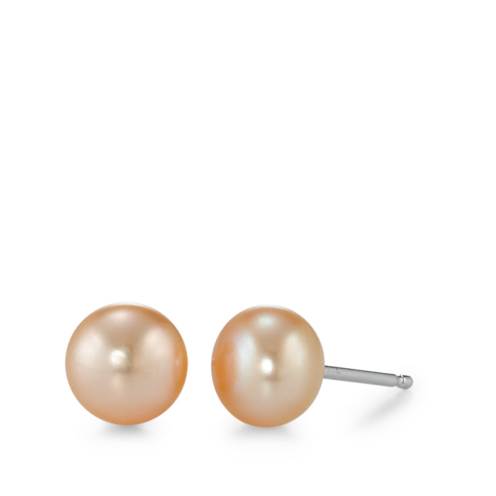 Ohrstecker Silber rhodiniert Süsswasserzuchtperle apricot, 2 Perlen 8-8.5 mm