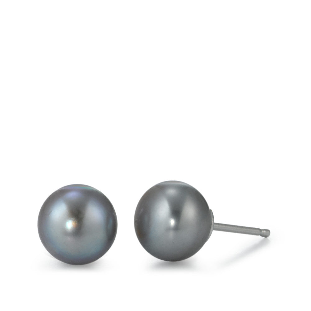 Ohrstecker Silber rhodiniert Süsswasserzuchtperle grau, 2 Perlen 9-9.5 mm