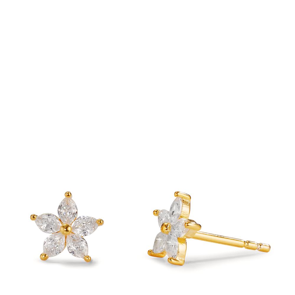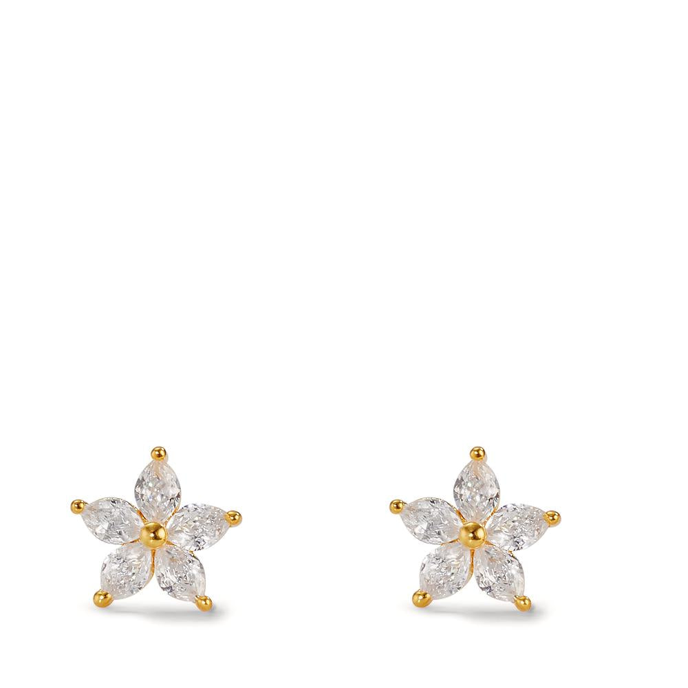 Ohrstecker Silber Zirkonia 10 Steine gelb vergoldet Blume Ø7.5 mm