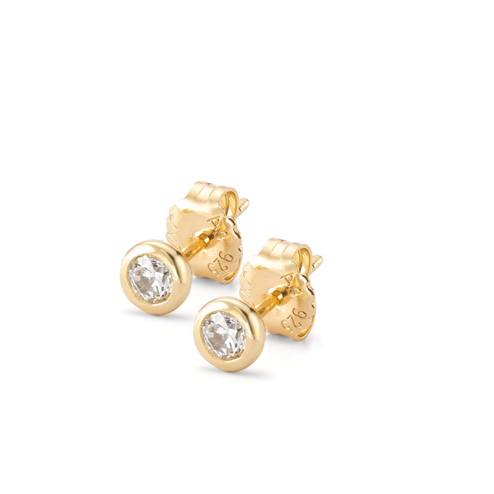 Ohrstecker Silber Zirkonia 2 Steine gelb vergoldet Ø5 mm