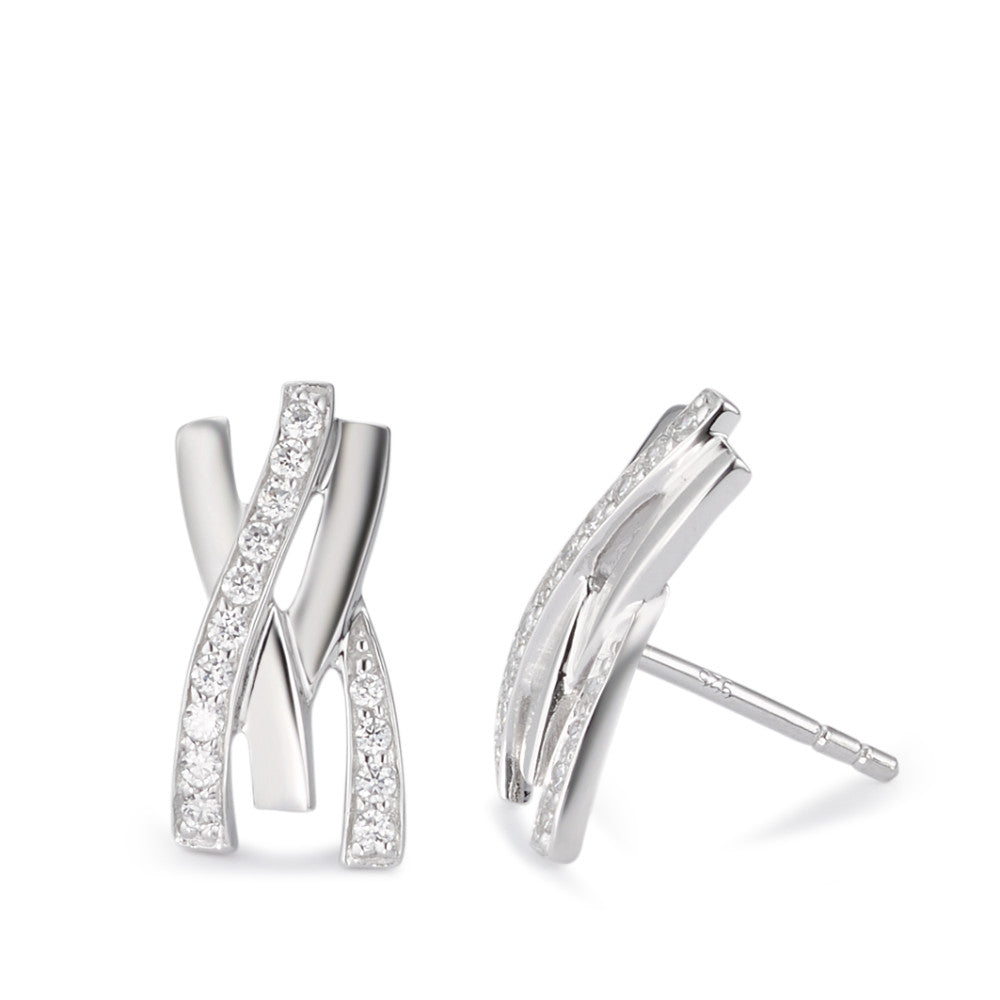Ohrstecker Silber Zirkonia weiss, 30 Steine rhodiniert