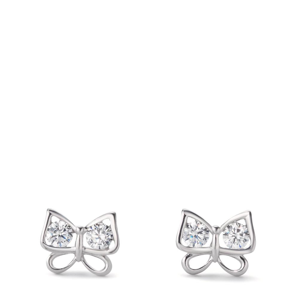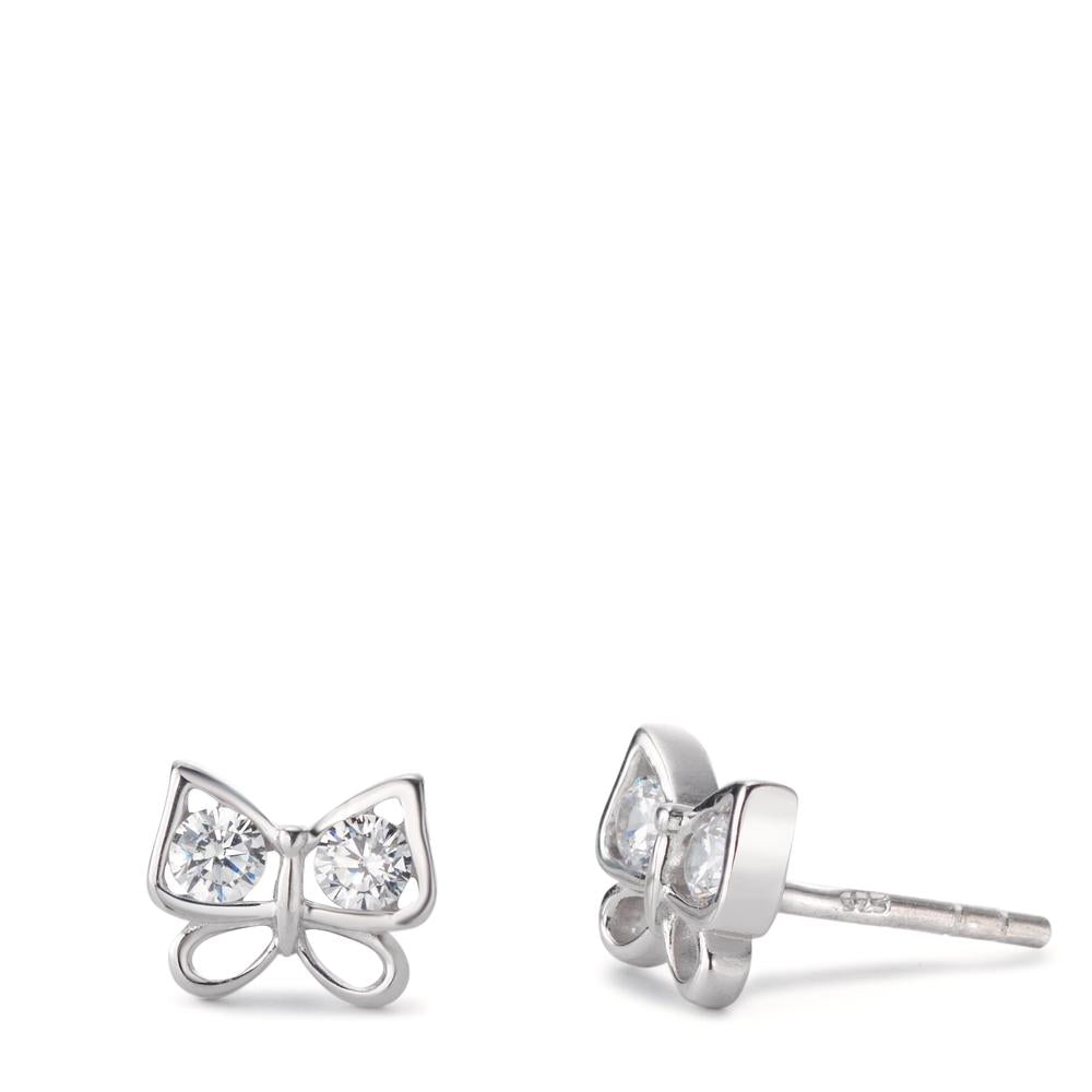 Ohrstecker Silber Zirkonia weiss, 4 Steine rhodiniert Schmetterling