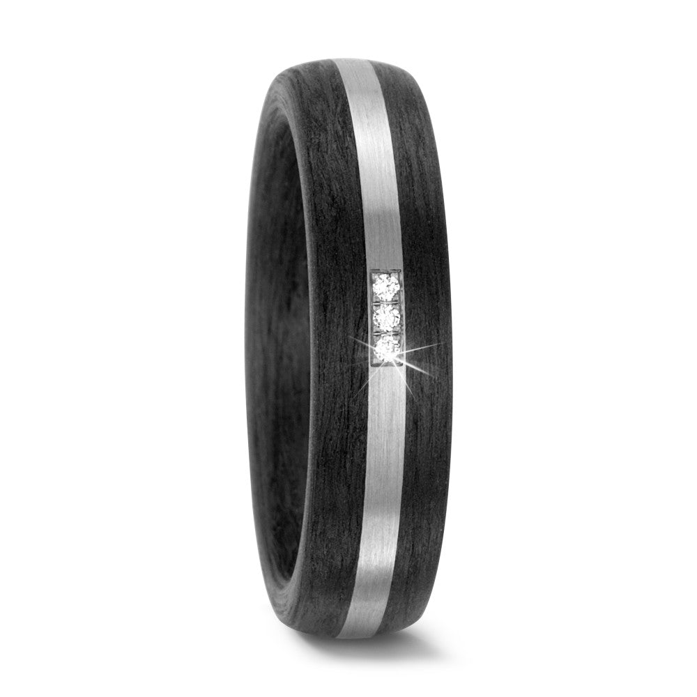 Moderner Damen-Partnerring aus 500er Palladium mit edlem Carbon-Inlay. Der Ring ist mit drei funkelnden Diamanten hochwertig besetzt und verbindet innovative Materialien mit zeitlosem Design. Perfekt für stilbewusste Frauen, die Eleganz und Charakter schätzen.