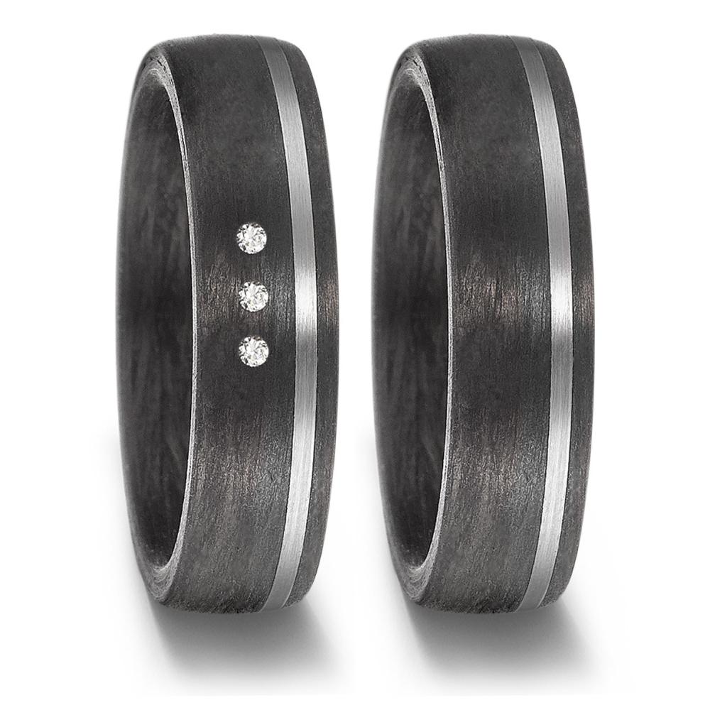 Partnerring 500 Palladium, Carbon Diamant 0.03 ct, 3 Steine