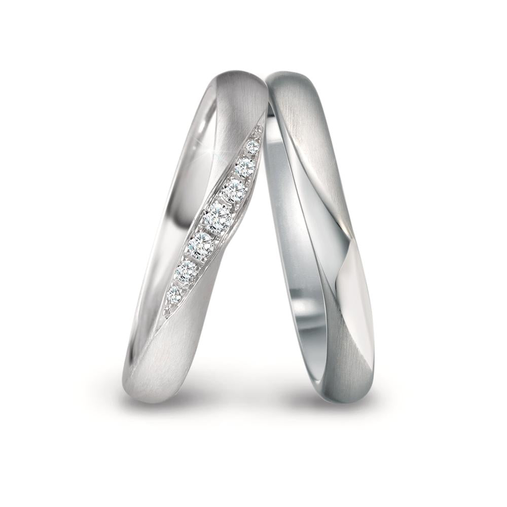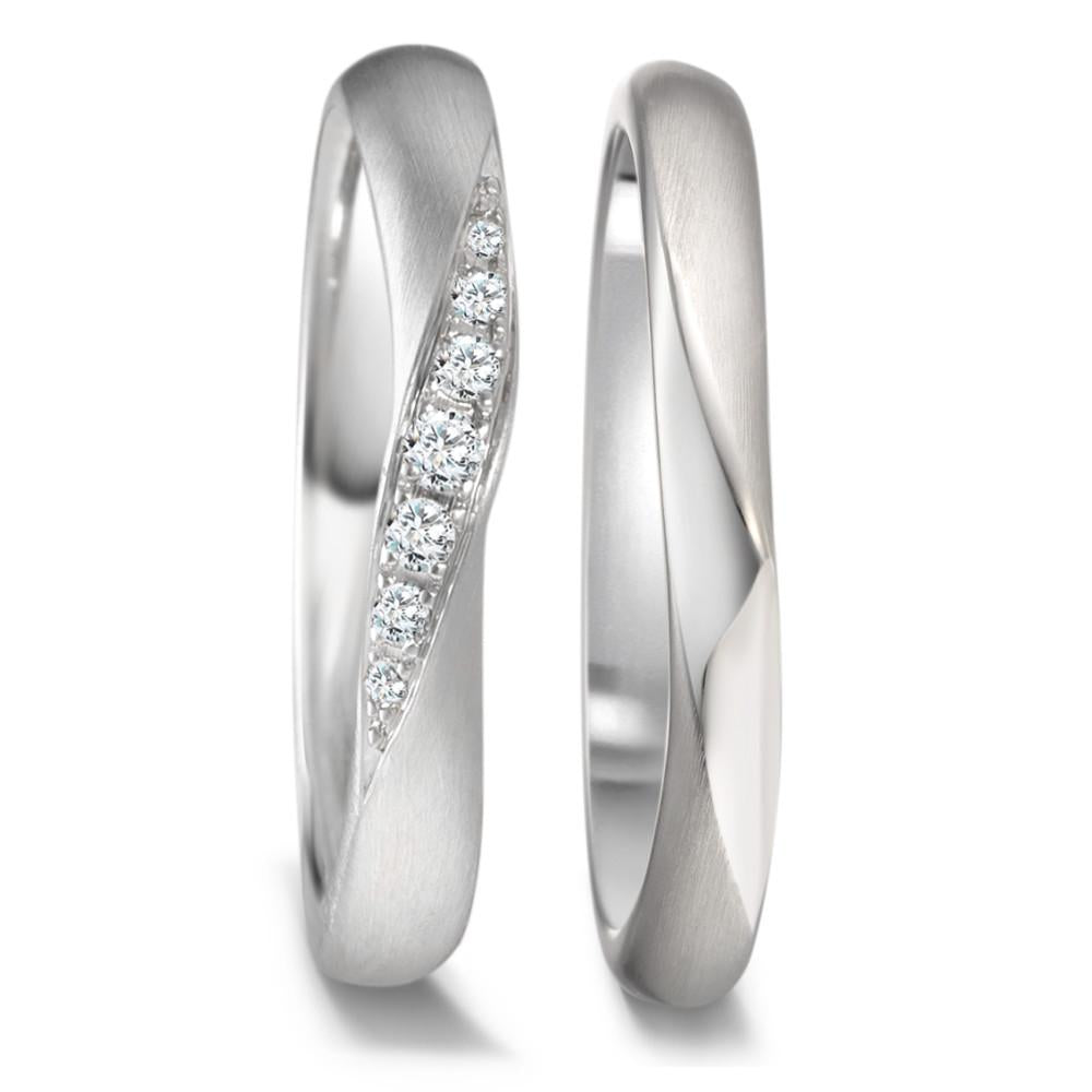 Partnerring 950 Platin Diamant 0.08 ct, 7 Steine, tw-vsi