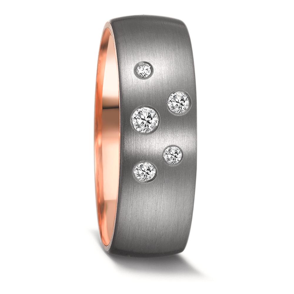 Partnerring 999 Tantal, 585/14 K Rotgold Diamant 0.14 ct, 5 Steine, w-si