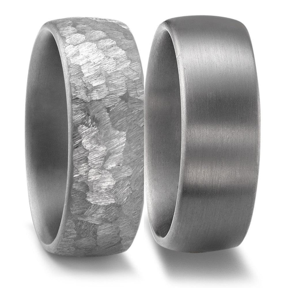 Moderner Partnerring aus 999er Tantal mit markanter, gehämmerter Oberflächenstruktur. Hochwertig, robust und besonders hautfreundlich bietet dieser Ring einen einzigartigen Look für Paare, die Wert auf Individualität und Qualität legen. Ein Symbol für ewige Verbundenheit.