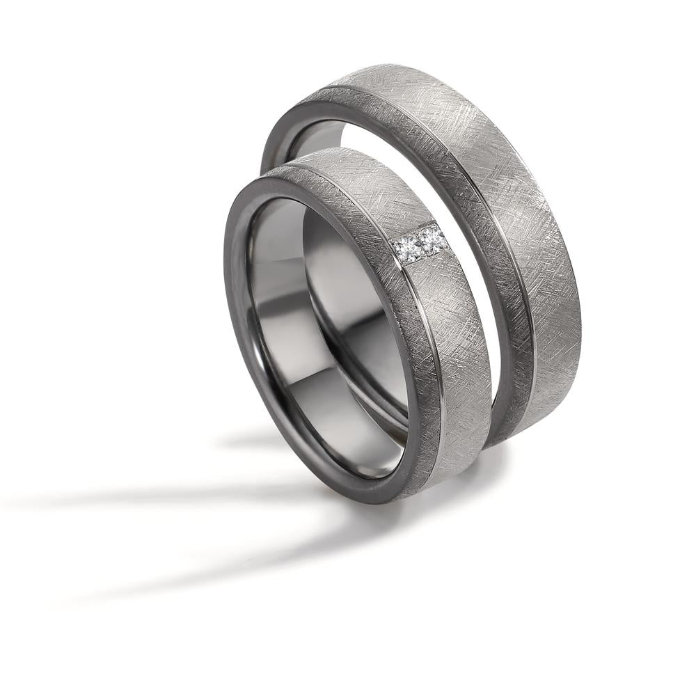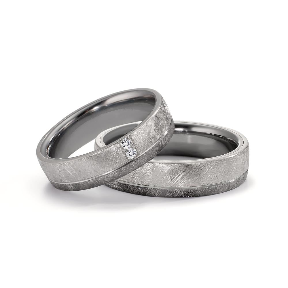 Partnerring 999 Tantal, 950 Platin Diamant 0.04 ct, 2 Steine, w-si