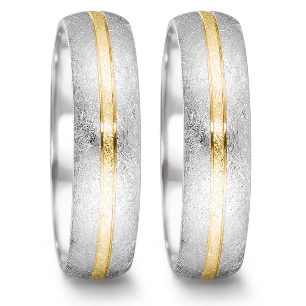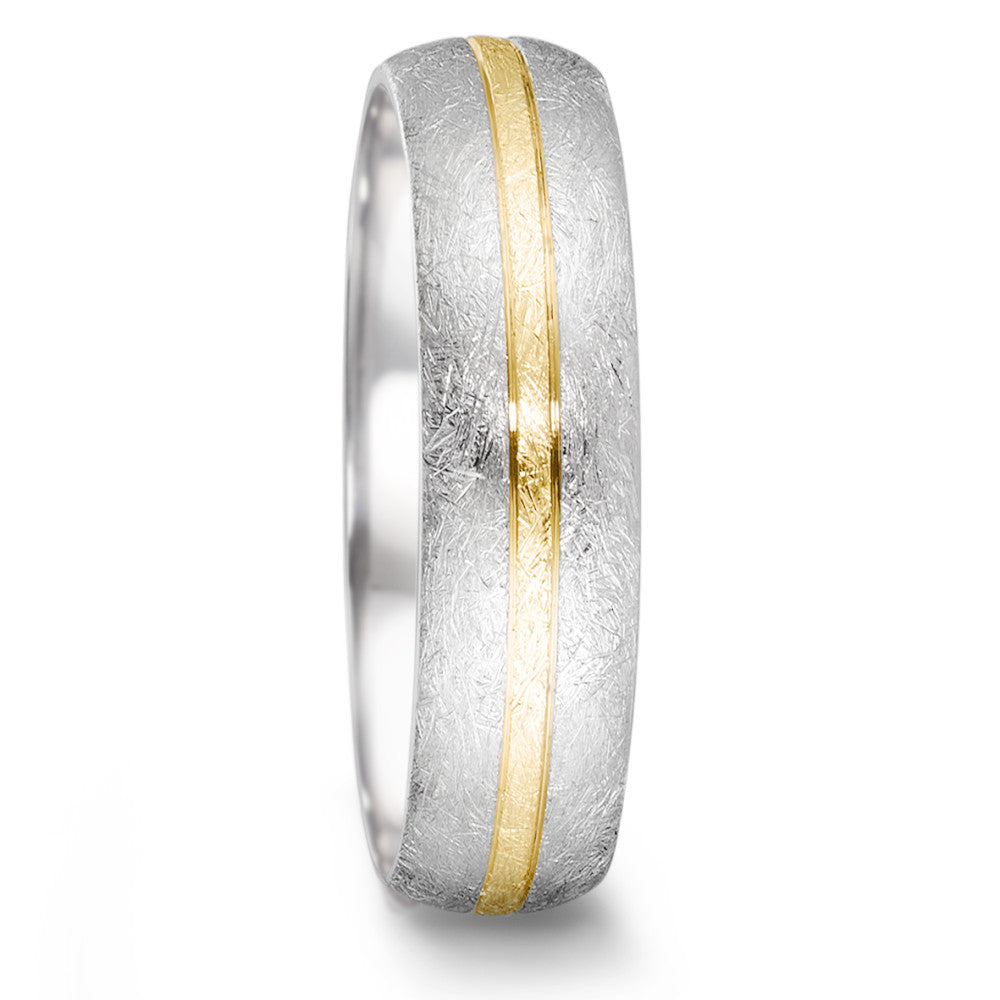 Zeitlos eleganter Partnerring aus langlebigem Edelstahl mit einer feinen Mittellinie aus 750er Gelbgold. Die einzigartige Kratzstruktur verleiht dem Ring eine besondere Optik und macht ihn zum perfekten Symbol für beständige Liebe und gemeinsamen Lebensweg.