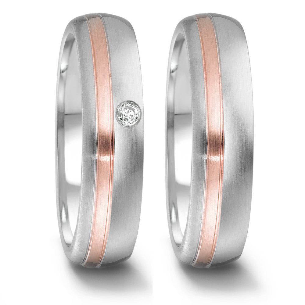 Partnerring Edelstahl, 750/18 K Rosegold Diamant 0.04 ct, tw-si