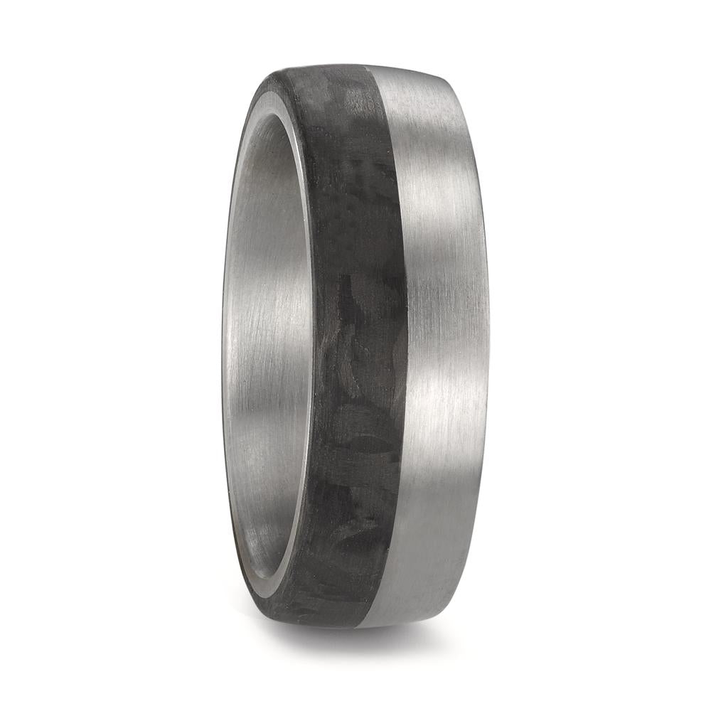 Moderner Partnerring aus robustem Edelstahl kombiniert mit elegantem Carbon. Die matte Oberfläche verleiht dem Ring einen stilvollen und zeitgemäßen Look. Perfekt für Paare, die Wert auf Design und Langlebigkeit legen. Ein Symbol für Verbindung und Stärke.