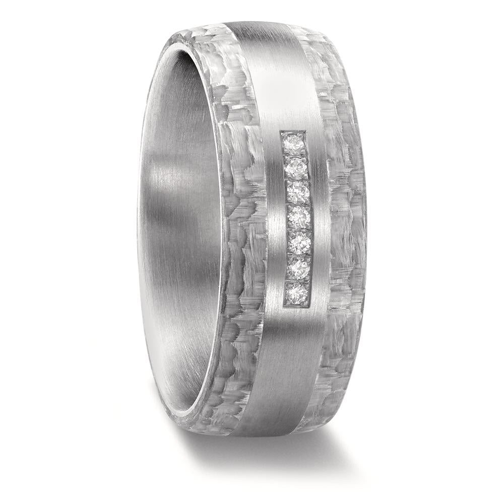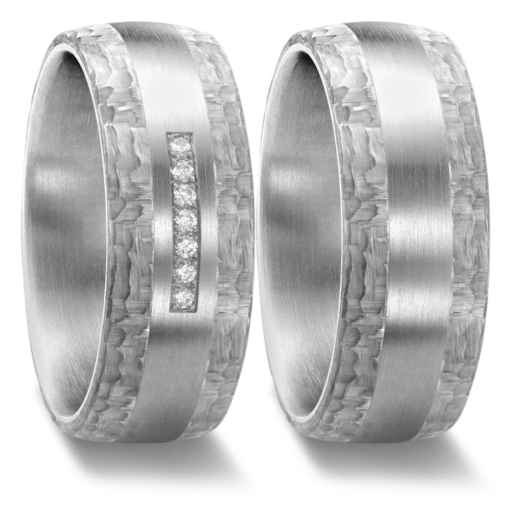 Partnerring Edelstahl, Carbon Diamant 0.07 ct, 7 Steine, w-si