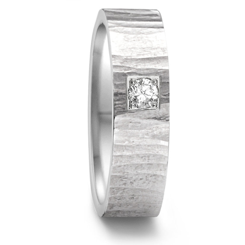 Eleganter Damen Partnerring aus hochwertigem Edelstahl mit edlem Diamanten. Die einzigartige Hammerschlag-Oberfläche verleiht dem Ring modernen Charme und zeitlose Eleganz. Perfekt als Symbol für Ihre Verbundenheit und stilvolles Accessoire für jeden Tag.