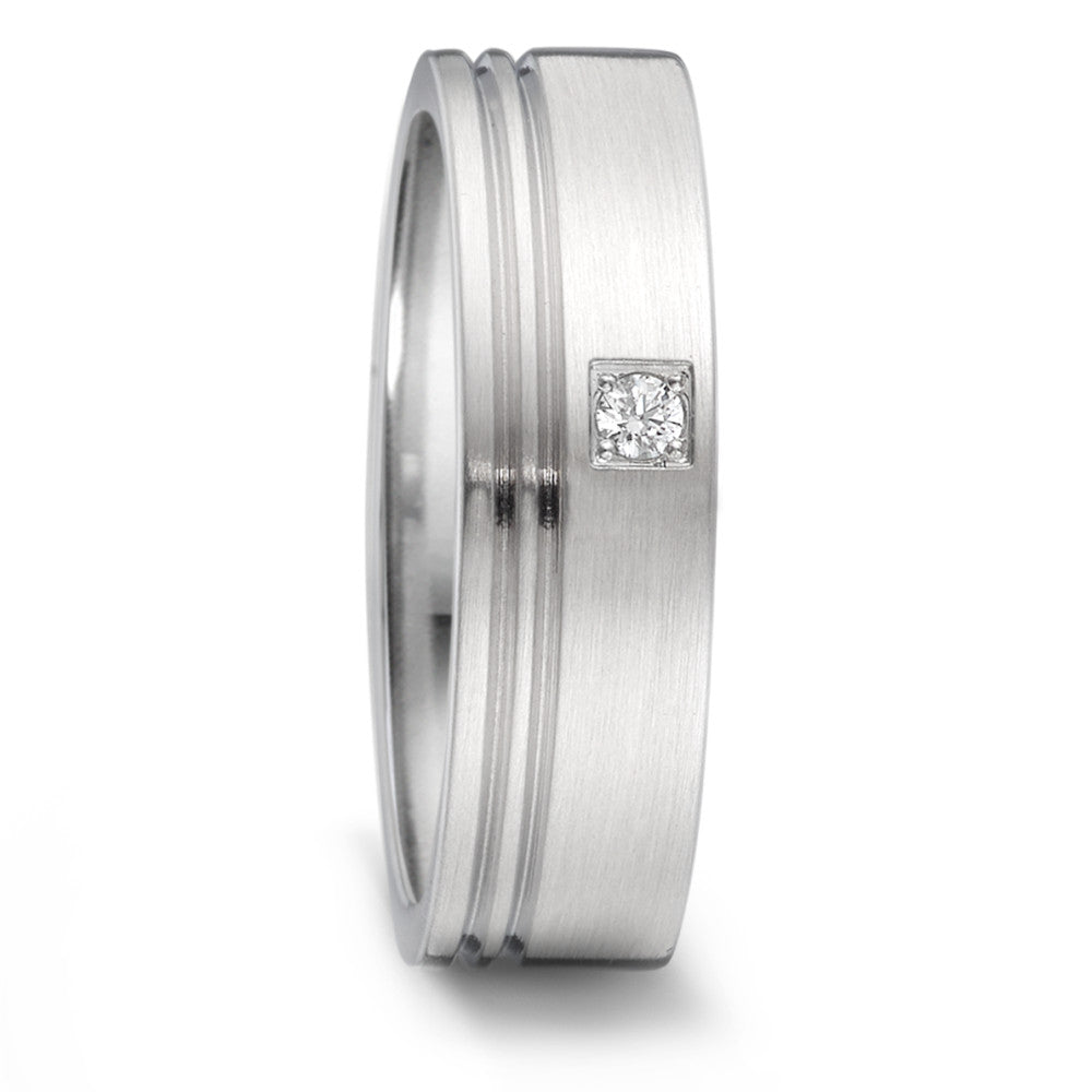 Eleganter Damen-Fingerring aus hochwertigem Edelstahl mit matter Oberfläche und dezenter Politur. Verziert mit einem funkelnden Diamanten, der dem Ring besonderen Glanz verleiht. Modernes Design trifft auf zeitlose Schönheit – perfekt für jeden Anlass.