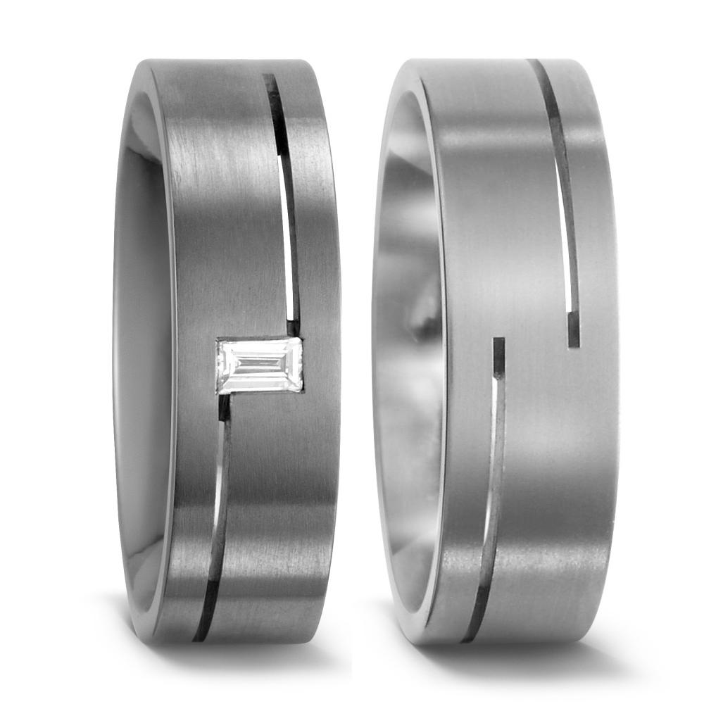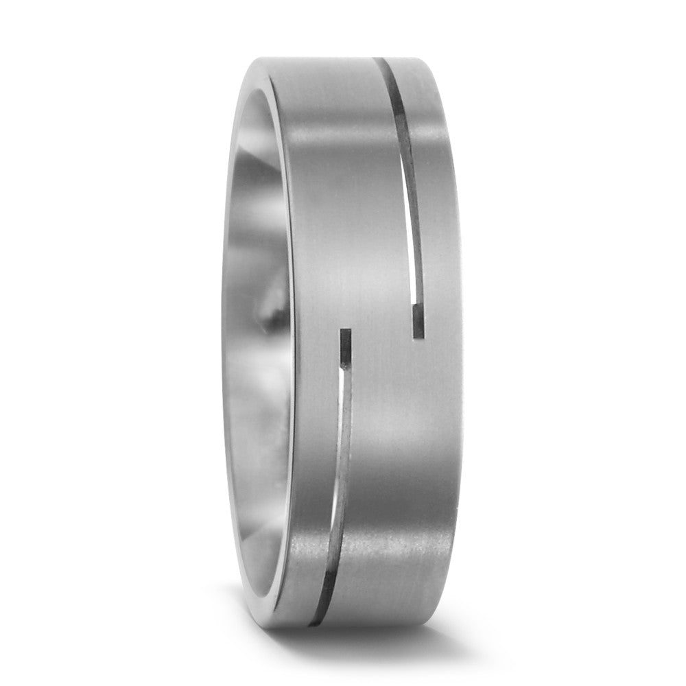 Moderner Partnerring aus hochwertigem Titan mit edler, mattierter Oberfläche und markanten, feinen Linien als dezentes Design-Element. Leicht, robust und hautfreundlich – der perfekte Begleiter für den Alltag und ein schönes Symbol der Verbundenheit.